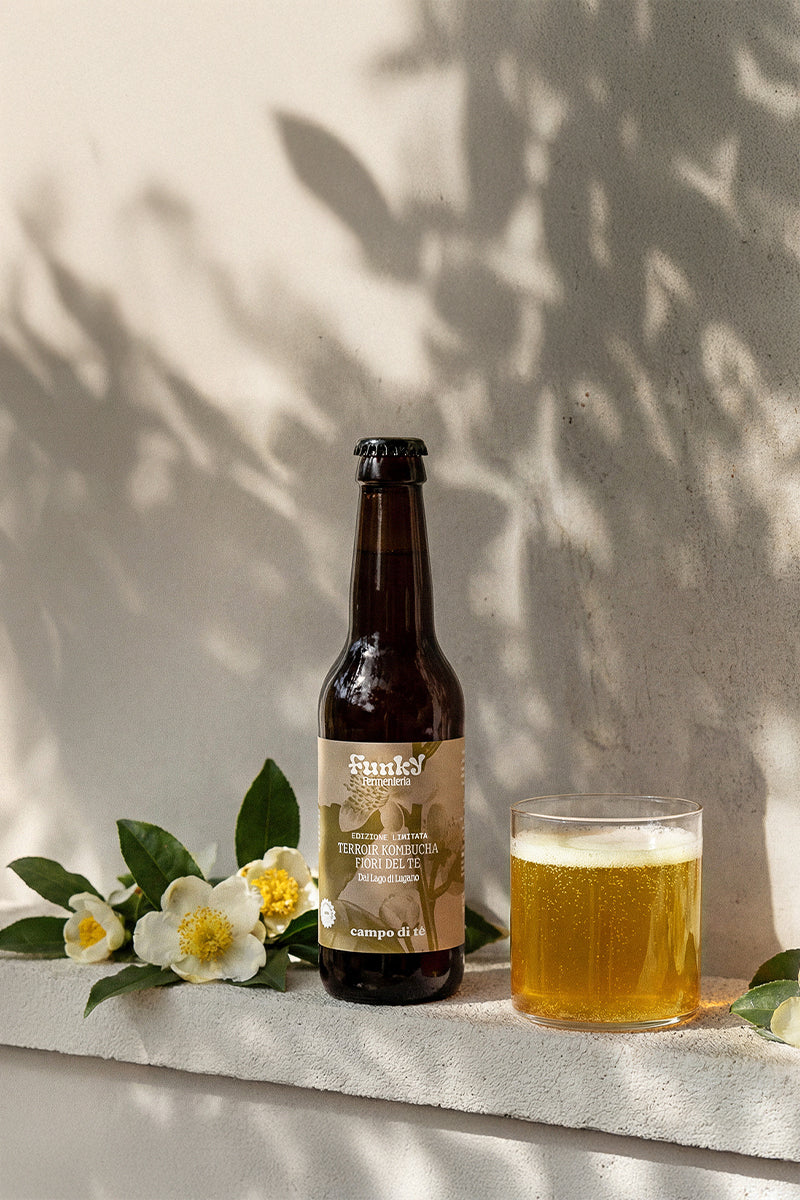 Da una pianta, quella del tè, di cui di solito si usano le foglie, noi abbiamo scelto i fiori. Infusi ancora freschi dopo poche ore dalla raccolta. Un kombucha delicato, incredibilmente profumato e dai piacevoli sentori di miele.